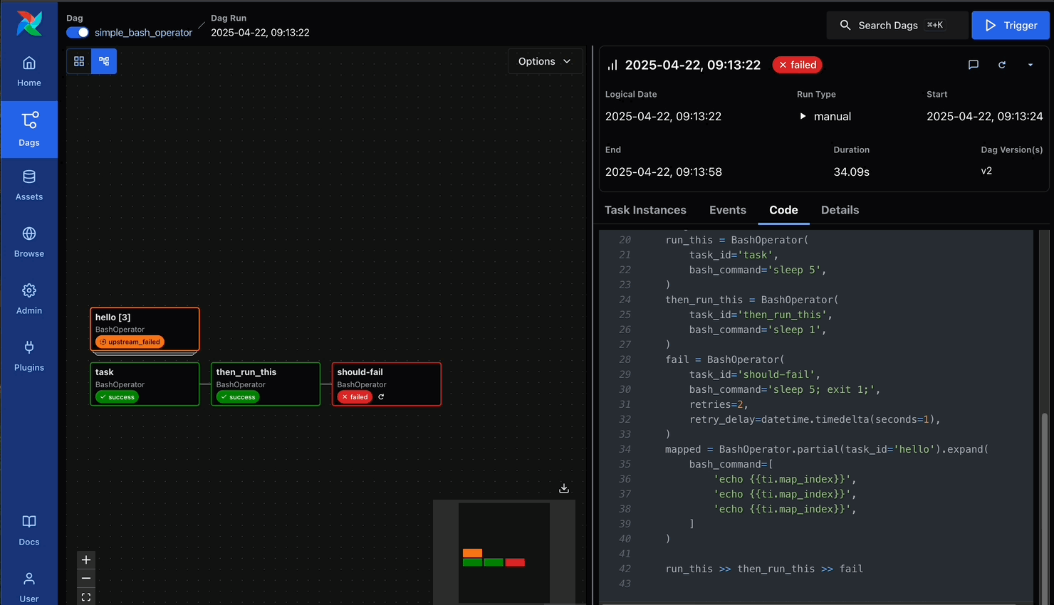 Airflow 3.0 replaces the Flask-Admin interface with a React-based frontend backed by FastAPI. The result: